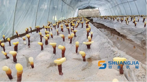 大棚里的靈芝撐起“雨傘”。人民網(wǎng)胡雨松/攝